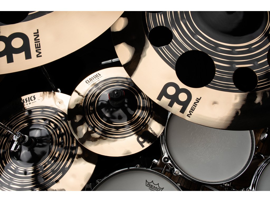 Osemdielna sada činelov Meinl Classic Custom Dark. Balenie obsahuje 14" Hi-Hat, 16" Crash, 18" Crash, 16" Trash Crash, 18" China, 20" Ride + 10" Splash a 12" trash Splash Zadarmo!