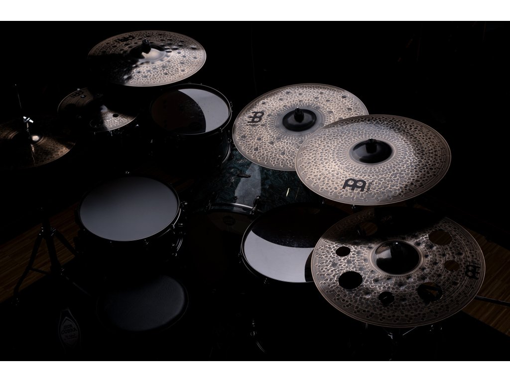 Štvordielna sada činelov Meinl Classic Custom Dark. Balenie obsahuje 14" Hi-Hat, 16" Crash, 18" China, 20" Ride.